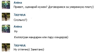 Lampiro: Ай-ай-ай. А кто это? А как это? Предлагаю полтора килограмма мандарин и два бегемотика из киндеров Ответил в лс