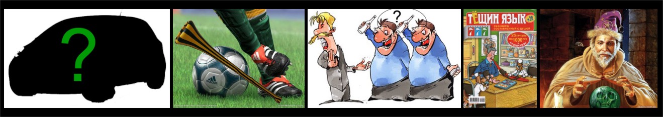 Логика: на картинках изображены по порядку прошедшие одиночные МШ: Угадай автомобиль FIFA 2010 : Вувузелу тебе в Йебду! Третьим будешь? Квадраслов - дешевый сканворд Мистика и колдовство
